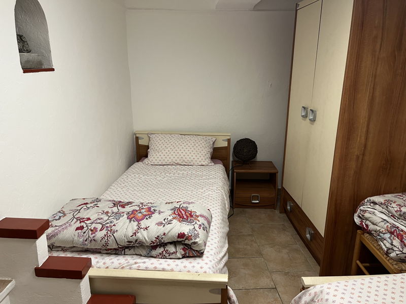 La deuxième chambre alcôve avec deux lits 90cm est accessible par un escalier de trois marches, tel que montré dans les photos. Canapé lit 2 places Accès pour personnes à mobilité réduite. Petite vue mer.