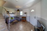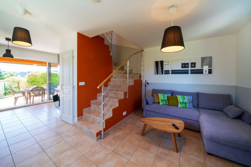 Espace confortable ouvert avec grande baie vitrée donnant accès à la terrasse.