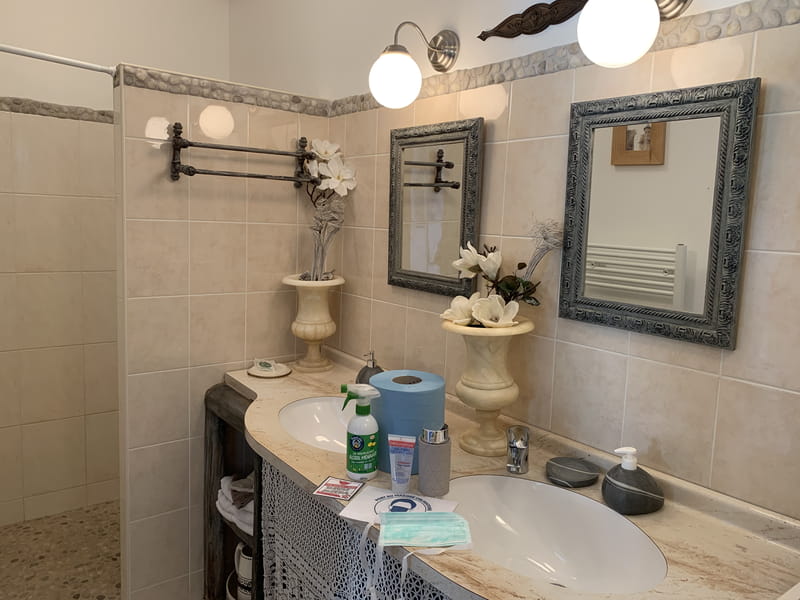 salle d'eau avec douche italienne, lavabo wc, connexion internet , accès au jardin salon de jardin privatif, parking possible dans la propriété