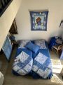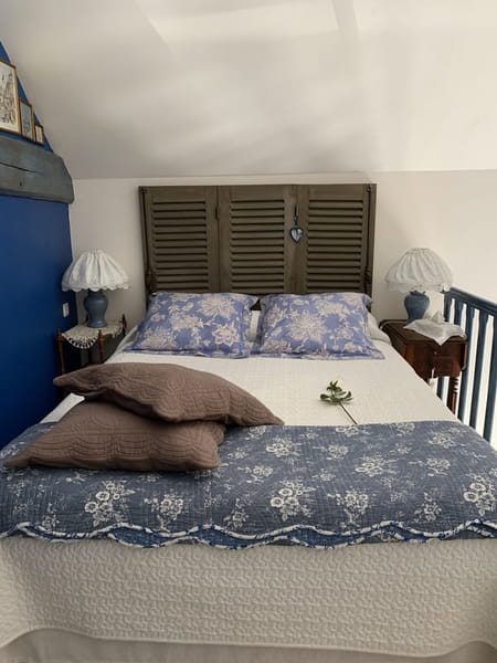 BLEU INDIGO chambre de plein pied, lit en 160, salle d'eau avec douche italienne, lavabo wc, connexion internet dans la chambre, accès au jardin salon de jardin privatif, parking possible dans la propriété