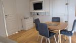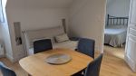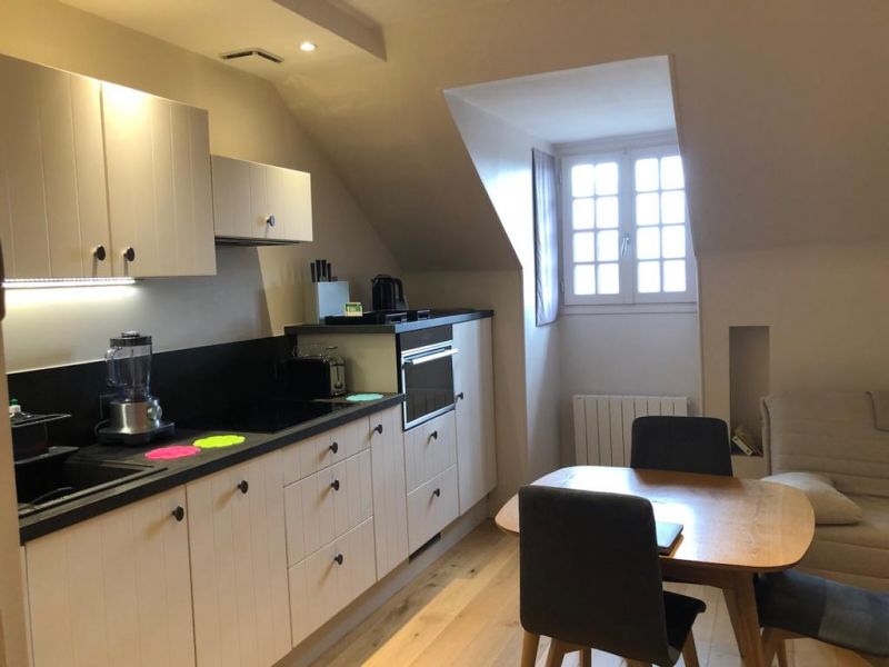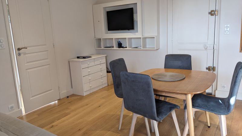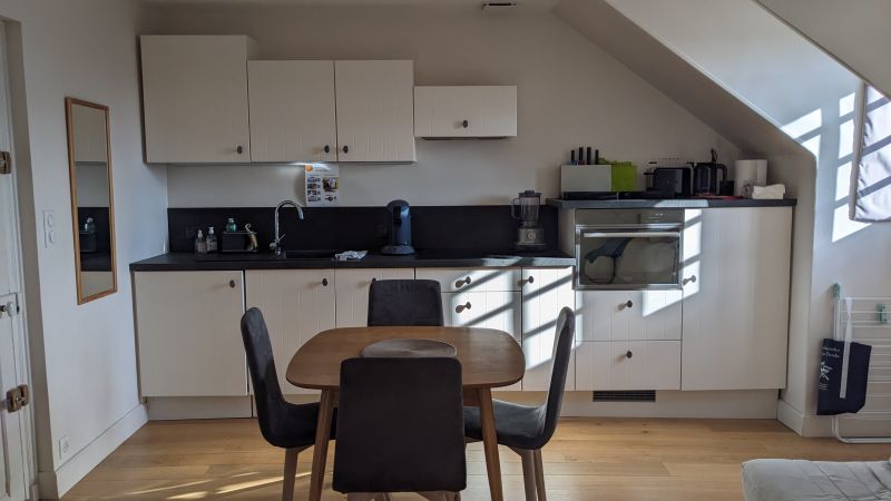 L’appartement est constitué de : - Une pièce à vivre avec fenêtre incluant la cuisine et le salon offrant une jolie vue sur la mer, les toits des maisons bourgeoises et les bocages normands. La cuisine comprend lave-linge, lave-vaisselle, plaques chauffantes, four, réfrigérateur et congélateur, mixeur, grille-pain, bouilloire, et cafetière (classique et Senseo). Les condiments essentiels pour cuisiner sont également fournis. Une table avec 4 chaises. Un canapé lit (type Bz). Une télévision vous proposant toutes les chaînes via Molotov, ainsi que Netflix et Disney. - Une chambre avec un lit double et deux tables de chevets accès aux toilettes et à la salle de bain (douche, lavabo, tiroirs de rangement pour produits de beauté) fer à repasser et avec sa petite table. - WC séparés - Wifi gratuit - Linge de maison compris dans le prix.