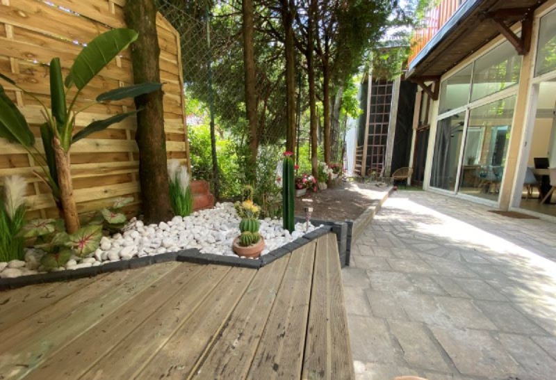 Un des atouts de cette maison est qu’une fois la porte refermée, vous apprécierez le charme de la campagne en plein centre-ville. Sa grande salle à manger donne par de larges baies vitrées sur le patio-terrasse ombragé sans vis-à-vis, bordé par le cours d’eau qui le longe tout du long. Calme et fraîcheur assurés grâce à cette oasis de détente et de convivialité équipé d’un Spa (en saison). Barbecue en dur à disposition. Grandes tables. Bancs et chaises de jardin.