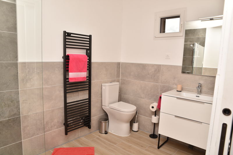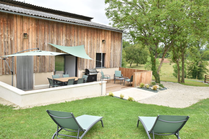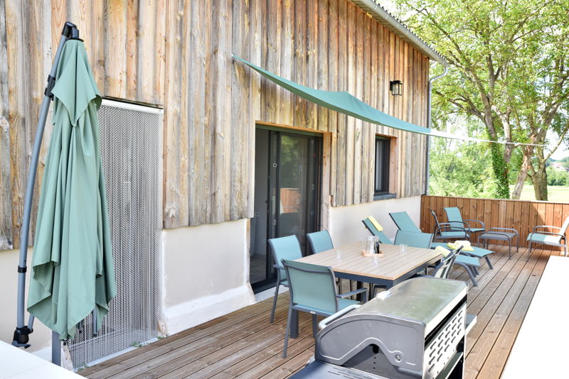 Des volets roulants et des moustiquaires sont présents sur l'ensemble des fenêtres du gîte. Une grande terrasse de 35 m² est accessible depuis la cuisine et le séjour. Elle est équipée pour le repos ou les repas. Un jardin clôturé et enherbé d'environ 300m² est accessible directement depuis la terrasse. Les 2 places de parking sont proches, et accessibles sans escaliers. Les draps et le linge de toilettes est fourni.