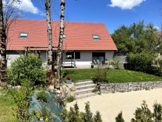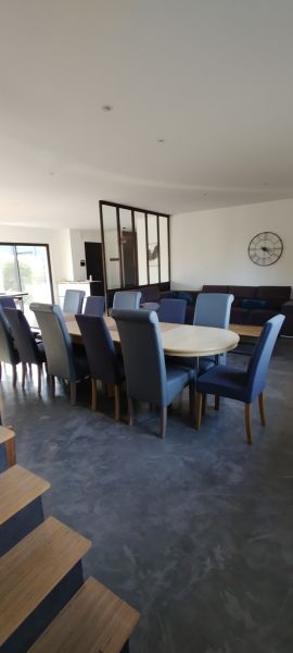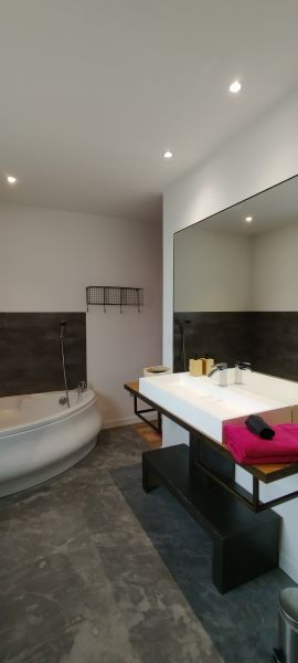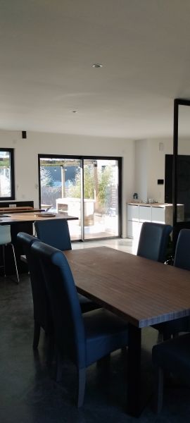 Belle et grande maison récente dans un secteur au calme, composée de : - un grand espace salon séjour avec grande table - une cuisine avec îlot central entièrement équipée (micro-onde, cafetière café filtre ou dosettes type Senseo, appareil à raclette, à fondue, grille-pain...) - 4 chambres doubles (3 avec grand lit et une avec grand lit et 2 lits superposés) et un canapé BZ 2 places dans la mezzanine - 4 salles de bain attenantes à chaque chambre - 3 toilettes - une terrasse ombragée par une pergola avec une grande table 12 personnes, barbecue à gaz - un babyfoot - un coin détente avec jacuzzi 5-6 personnes et coin bar - un terrain de pétanque avec quelques boules à disposition.