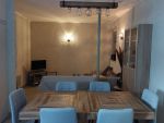 Cuisine aménagée : four, micro-ondes, lave-vaisselle, frigo congélateur, bouilloire, cafetière dosettes Senseo, grille-pain, plaque à gaz, vaisselle, table et 6 chaises, placard, vaisselier