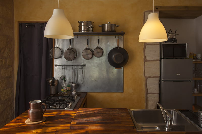 Gîte de 50m² en duplex avec murs en pierre apparente surplombant un paysage naturel, sans vis à vis. Entièrement rénové dans un esprit « créole », très coloré, tout équipé, reposant et tout confort.