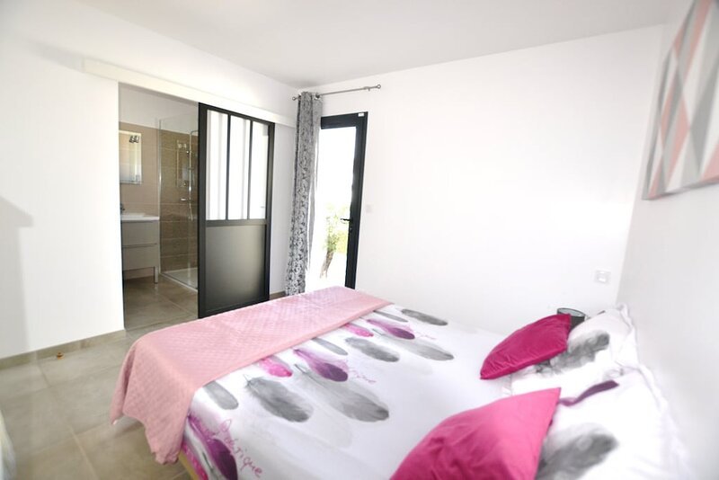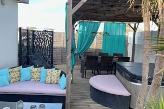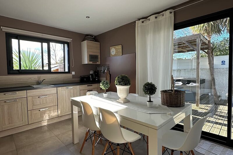 Cap d'Agde quartier Rochelongue Magnifique villa neuve ***pour 5/6 personnes,80 m2 sur 400m² de jardin, à 380 mètres de la plage. Villa idéale pour familles et repos Dans un quartier calme, sans vis à vis, entièrement climatisée, plein sud, terrasse en bois de 100 m² avec piscine 3 x 5 m chauffée saison et SPA dans un jardin arboré TV dans salon et 3 chambres. Parking 2 véhicules.