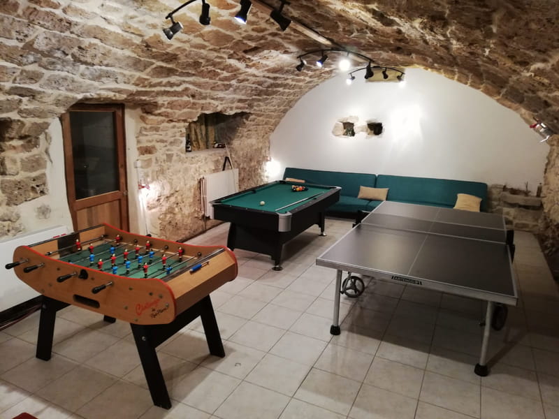 ✔ Espaces collectifs adaptés aux équipes. Grande salle commune idéale pour les repas d’équipe et les moments de détente Cuisine entièrement équipée : fourneau pro gaz, grand four, 2 frigos géants, congélateurs, Nespresso, vaisselle complète, ustensiles de cuisine, tireuse à bière, etc. Deux salons pour se reposer après le travail (TV, canapé, PS4 si besoin) Grande salle de jeux voûtée (babyfoot, ping-pong, billard) pour décompresser en équipe.