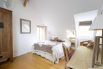 RDC : grande pièce à vivre, salon semi-séparé avec poêle à bois, cuisine américaine, préau. 1 étage : 1 chambre avec 1 lit X 160 cm + salle d'eau privative, wc ; 1 chambre avec 1 lit X 160 cm + 1 chambre avec 2 lits X 90 cm se partageant 1 salle d'eau avec wc.