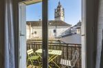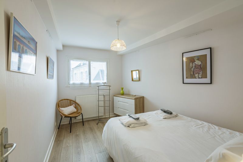 Il bénéficie d'un équipement qui doit vous apporter tout le confort et le bien être attendu : pièces claires et accueillantes, une décoration simple et de bon goût, des espaces fonctionnels et suffisamment grand pour se sentir à l'aise, une vue reposante et de qualité. Tous les ouvrants des pièces principales donnent soit sur un grand balcon avec vue sur des monuments historiques (la Tour Saint Antoine, le Logis Royal, l’Hôtel de Ville) ou sur un jardin paysagé avec terrasse. La cuisine est équipée de cafetière, bouilloire et grille-pain, lave-vaisselle, lave-linge-sèche-linge, plaque vitro avec hotte, four et micro-onde. Il est mis à votre disposition des produits pour le corps et les cheveux, des produits d’accueil : chaussons, bonnets de bain, kit couture et autre. Vous aurez pour le premier jour : café, thé et tisane mais aussi pour vous faciliter la vie quelque doses pour le lave-vaisselle et la machine à laver le linge (quantités variant selon la durée du séjour). Il est équipé du WIFI gratuit, télévision, DVD, radio/chaîne stéréo, jeux, magasines et livres. Les lits sont Queen size ou jumeaux selon les chambres et équipés de draps en percale de coton avec deux oreillers. Toute la literie et tout le linge de toilette respectent l’écologie. Les produits mis à disposition pour le corps et les cheveux ainsi que les produits d'entretien respectent l'environnement.