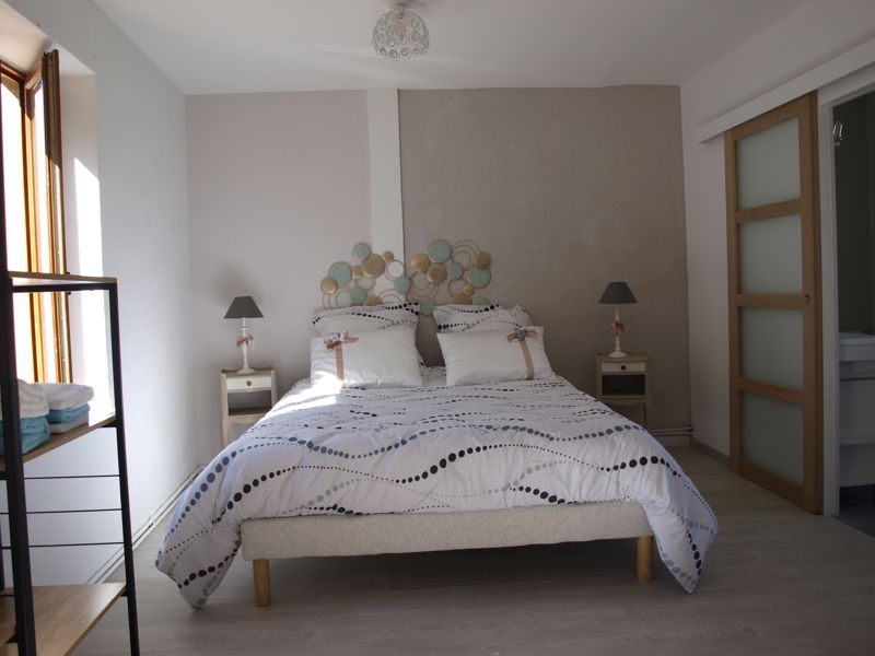 Vous serez accueilli dans une belle maison typiquement dauphinoise. L'endroit est un havre de tranquillité. Le logement est idéal pour faire une halte que ce soit pour le travail ou le plaisir. Nous sommes à 20 min des sorties d’autoroute ; à 50 min de Lyon et de Chambéry. Je propose 2 chambres, la chambre Zénitude et la chambre Gourmandise, qui sont situées au 1er étage de la maison avec chacune leur salle d'eau attenante. Chaque chambre a un lit en 160 cm et un divan convertible en 140 cm. La chambre Gourmandise a aussi une table sur laquelle vous pouvez vous installer pour travailler.