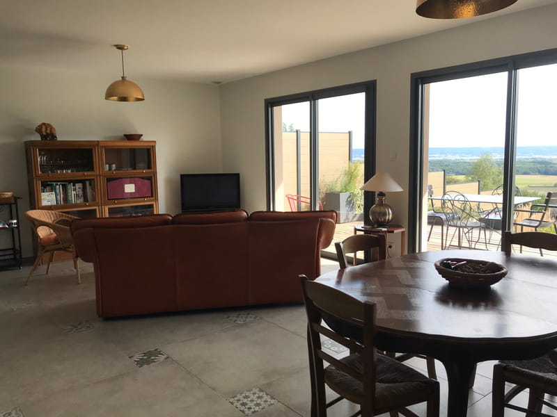 Maison récente de 90 m² tout confort, composée d'un grand espace cuisine/salon/salle à manger, de 2 chambres, d'une salle d'eau, d'un wc séparé et d'un cellier.