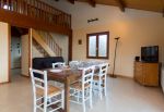 Idéalement situé au sommet d'un coteau dominant la plaine, ce gîte mitoyen à la maison du propriétaire bénéfice d'un panorama exceptionnel allant du Mont-Blanc aux Cévennes. Au RDC (accès par quelques marches) : vaste séjour avec soin salon et équipement remise en forme, cuisine, Ch.1 (2 lits 90x200), S. d'eau, wc., A l'étage : Ch.2 (2 lits 1 pers.), Ch.3 (2 lits 1 pers. possibilité de dresser 1 lit 2 pers à la place). Chauffage central, l-linge, lave-vaisselle, micro-ondes, congélateur. Terrasse avec vue sur la vallée, s.de jardin. TV et Wifi, Parking. A proximité jeux de boules ombragé, salle de 30 m² avec ping pong et babyfoot réservé au 4 gîtes ainsi qu'une aire de jeux avec balançoire et toboggan.