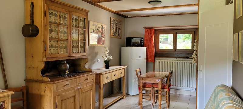 Au rez de chaussée, entrée indépendante, sans vis-à-vis. Pièce principale avec séjour comprenant un coin salon avec un canapé, une télévision. Un coin cuisine ouvert sur le séjour, comprenant une table, un réfrigérateur avec congélateur, un four, un micro-onde, une cafetière électrique, une plaque de cuisson, hotte aspirante, vaisselle, casserole. Une chambre, avec lit en 160 (draps fournis), chevets, armoire. Une salle d'eau, wc, lavabo, douche.