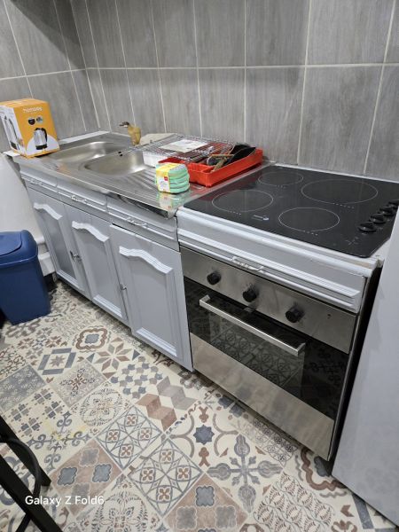 1 entrée, 1 cuisine américaine entièrement équipée avec machines à laver frigo congélateur etc..1 salon avec 1 canapé BZ 1 télévision satellite table basse meuble de rangement