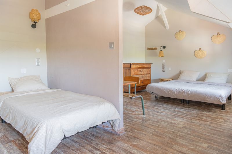 Le gîte possède 7 chambres (une avec 4 lits simples et 6 chambres doubles) et 7 salles de bain.