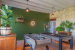 Vous disposerez ainsi d'une grande pièce de vie avec un coin salon et un espace repas, deux cuisines aménagées, un second salon avec TV et une salle de jeux équipée d'une table de ping-pong, un baby-foot et un billard.