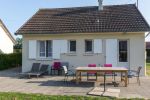 Agréable maison indépendante de plain-pied, exposition sud/ouest dans un secteur tés paisible, à 2 km de la mer, Séjour, coin-cuisine, canapé convertible, TV, lecteur DVD, lave-vaisselle, lave-linge, terrain clos privé, terrasse, salon de jardin. Classement 3 étoiles*, Capacité 4 personnes, Nombre de chambres : 2,chambre 1(1 lit de 140), chambre 2 ( 2 lits de 90) tourisme et handicap.