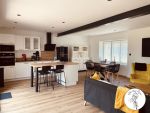 -Cuisine ouverte toute équipée (four, micro-onde, cafetière à filtre, bouilloire, grille pain, mixeur, batteur, hachoir, appareil à raclette, autocuiseur…) avec îlot pour moment convivial avec vue sur la campagne environnante.