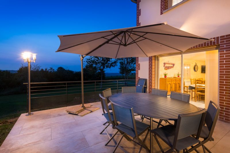 Gite de 10 à 12 personnes à la campagne a 2 mn d'un bourg de 3000 habitants et proche de tous commerces, il contient 5 chambres, 5 salles de bain, 5 wc, une lingerie, un salon, une salle à manger, une cuisine toute équipée, une buanderie et un autre wc, une terrasse extérieure, un barbecue, un salon de jardin, parasol et table et chaises pour manger à l'extérieur, parking gratuit, grand jardin, terrain de boule, jeu pour enfants.