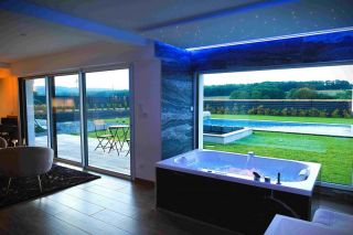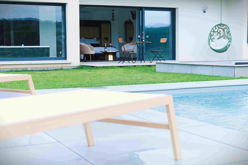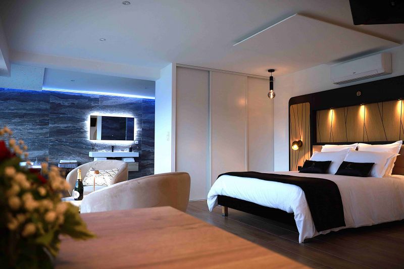 Loft haut de gamme de 50 m² entièrement privatisé de plain-pied. Il se présente comme un grand espace tout ouvert et lumineux avec une magnifique vue donnant sur un grand jardin avec piscine privative pendant la période estivale (de juin à septembre). Une terrasse est également attenante au logement. Ce loft est climatisé et doté d’équipements de dernière génération incluant une baignoire balnéo haut de gamme surplombée par un ciel étoilé, une douche à l’italienne ainsi qu’une cuisine équipée.