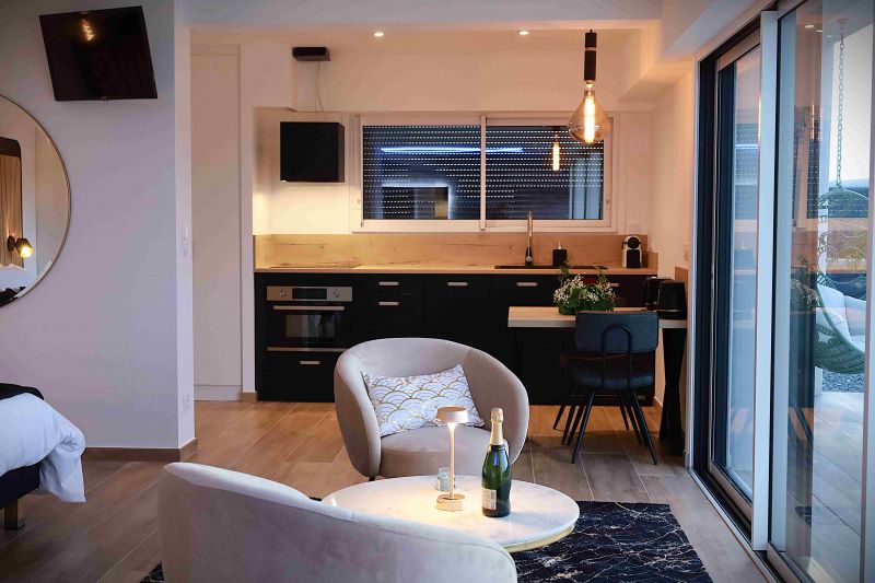 Ce logement est aussi équipé d’une machine à café, une TV connectée (Netflix), un grand lit de 1m60 avec literie premium de qualité (Linvosges), Linge de bain (Linvosges), Sèche-cheveux, Bouilloire, Grille-pain, four micro-onde, wifi