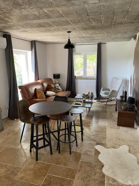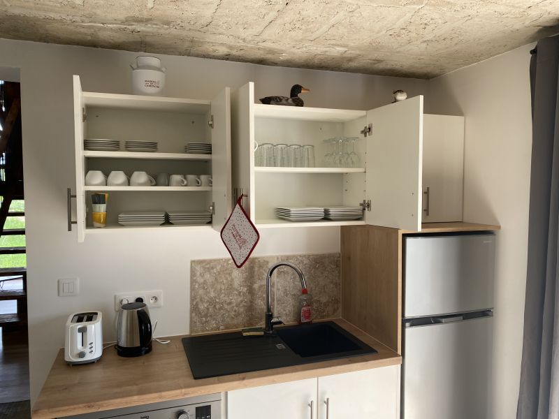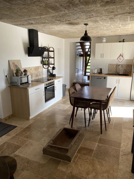 Cuisine équipée, four, plaque de cuisson, frigo, micro-ondes, bouilloire, machine à café, couverts et ustensiles, lave-vaisselle.