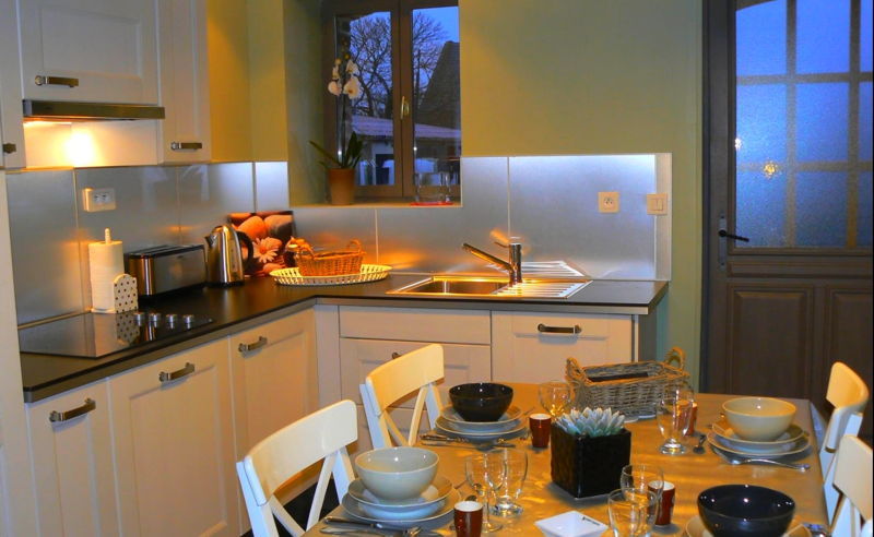 Le gîte Perle de l'Ecaillon : cuisine toute équipée avec LV, salon, TV écran plat, wifi, 2 chambres à l'étage (comprenant 5 lits simples) avec sdb: douche, meuble 2 vasques. wc séparés.