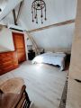Le Gîte, 3 épis, pour 2 à 4 personnes, dans maison ancienne restaurée avec tout le confort, comporte 3 pièces : Salon (canapé-lit) - Salle à Manger avec cuisine américaine équipée, Chambre particulière et indpte avec lit en 140. Salle de Bains (douche et baignoire) et WC séparé. Le Gîte dispose d'un canapé-lit (en 120) au salon. (1 Lit pliant supplémentaire 1 place est possible avec supp.=+30 €).