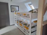 Maison lumineuse et agréable située en face du lac dans un quartier résidentiel calme, commerces à proximité. Elle est également à quelques kilomètres de la station thermale de Bagnoles de l’Orne ainsi que d’autres beaux paysages. Le logement possède un étage où se trouve une grande chambre avec lit double (160*200), deux lits superposés (90*190) et un lit double (140*200) sur le palier ainsi qu’un toilette avec lavabo. Au rez-de-chaussée, un grand canapé dans le salon, une salle d’eau avec machine à laver, un wc et une cuisine toute équipée.