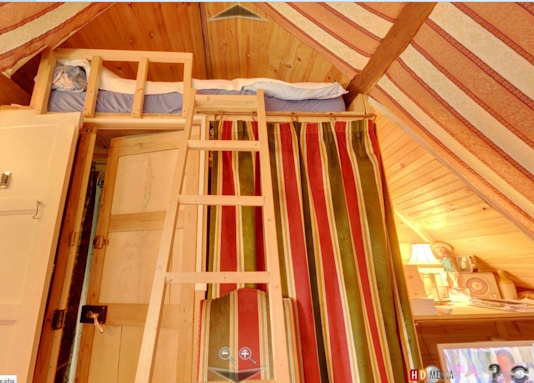 La Chambre d'hôtes est indépendante (1 à 4 p ) : elle se compose d'un lit 2 places + 1 mezzanine (avec supp) couchage en 140 accessible par une échelle.