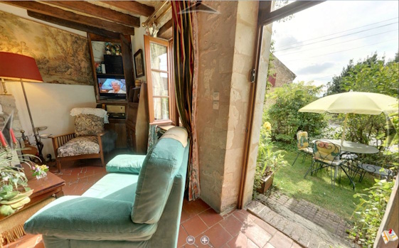 Le Gîte, 3 épis, pour 2 à 4 personnes, dans maison ancienne restaurée avec tout le confort, comporte 3 pièce: Salon (canapé-lit) - Salle à Manger avec cuisine américaine équipée, Chambre particulière et indpte avec lit en 140. Salle de Bains (douche et baignoire) et WC séparé. Le Gîte dispose d'un canapé-lit (en 120) au salon. (1 Lit pliant supplémentaire 1 place est possible avec supp.=+30 €).