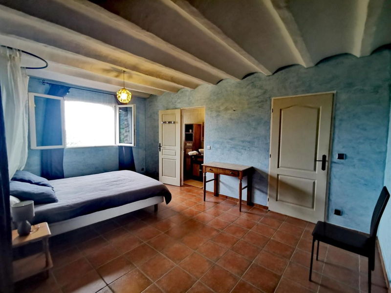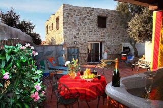 Grand mas catalan aux pierres apparentes comprenant le gîte, la résidence du propriétaire et une location à l'année ; chaque partie possède un accès indépendant et sans vis-à-vis. Véritable nid d'aigle dominant toute la plaine du Roussillon au sein d'une propriété privée de 300ha. La vue panoramique à 360°est exceptionnelle de la Méditerranée (le Barcarès, Canet plage, Collioure) aux Pyrénées (Mont Canigou, Cerdagne, Andorre, frontière Espagnole). La situation centrale du gîte au milieu du département facilite grandement les visites côté mer et côté montagne. Le gîte est à ½ heure de l'Espagne, 2 h de Barcelone, 15 mn de Perpignan.