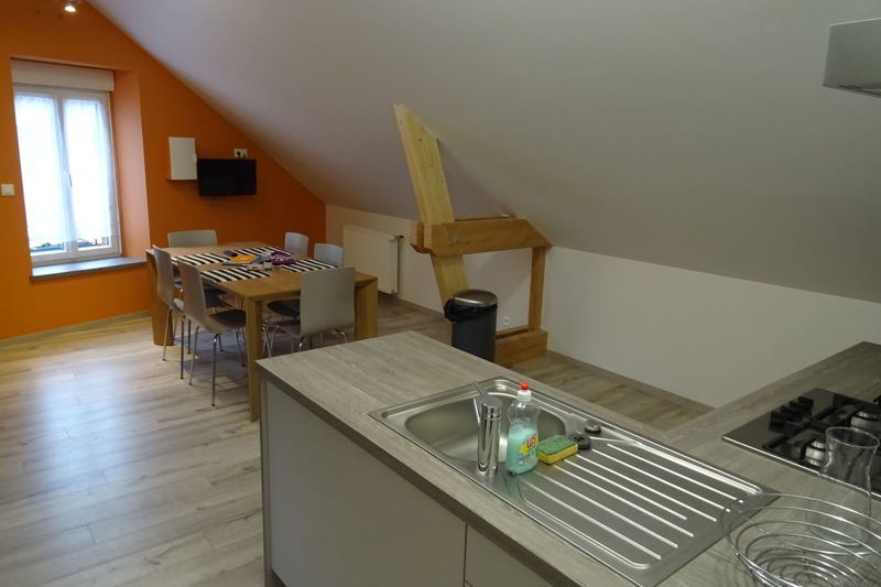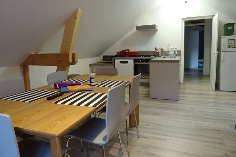 L’appartement de 60m² classé 2 étoiles se compose : d'une cuisine ouverte sur salon, équipée d'un lave vaisselle, réfrigérateur, plaque gaz, four, micro-ondes, appareil à raclette, service à fondue, cafetière électrique, bouilloire, toaster, fer à repasser, télévision écran plat, un lecteur de DVD, Wifi. d'une chambre avec 1 lit de 140 avec couettes, d'une chambre avec 1 lit de 90 avec couettes et 2 lits superposés de 90 avec couettes, d'une salle de bain avec douche, sèche serviette et d'un wc, d’une buanderie avec machine à laver. Possibilité de garer sa voiture dans la cour. Nos amis les animaux ne sont pas admis, appartement non fumeur. Tarifs week-end, deux semaine et plus, sur demande. Photos complémentaires sur demande. Non accessible aux personnes à mobilité réduite.