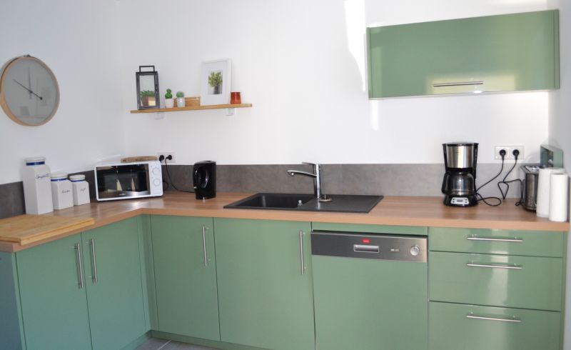 1 gîte de 70 m² de plain-pied avec une pièce de vie et cuisine ouverte, deux chambres avec un lit double, une salle de bain