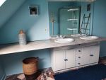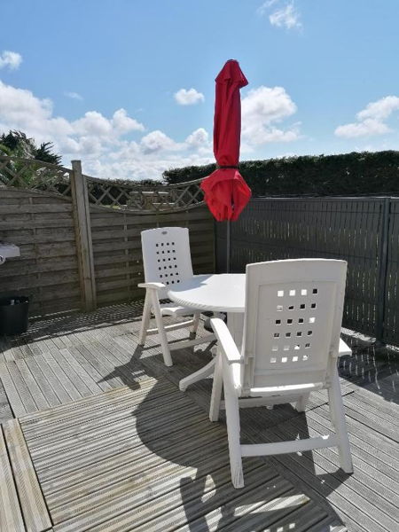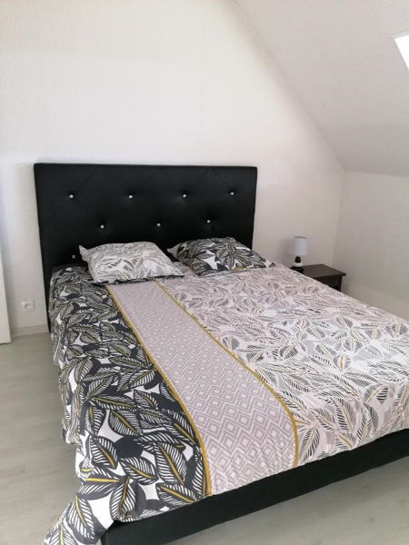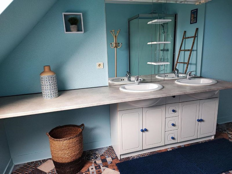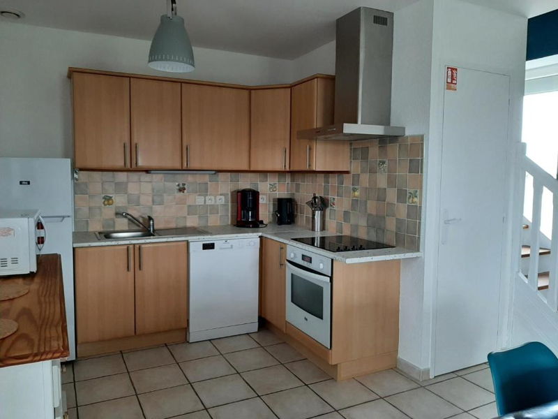 Gîte 5 personnes – 70 m². Cuisine ouverte sur séjour - salon Séjour – salon : TV, bibliothèque (livres tout âge, jeux de société) Cuisine : lave-vaisselle, lave-linge, four, micro-ondes, plaques électriques, réfrigérateur/congélateur, cafetière, bouilloire, grille-pain, fer et table à repasser, aspirateur Wifi. 1 wc indépendant. Au premier étage : 2 chambres avec vue sur la mer (1 chambre avec 1 lit double 140 X 190 - 1 chambre avec 1 lit double 140 X 190 et 1 lit simple 90 X 190) 1 salle d’eau avec douche, 2 vasques, 1 wc. Linge de lit et linge de toilette non compris. Autres équipements : Connexion Wifi. Chauffage électrique. Terrasse donnant sur un espace vert, salon de jardin, barbecue Gîte non-fumeur. Détecteur de fumée – Extincteur Parking gratuit.