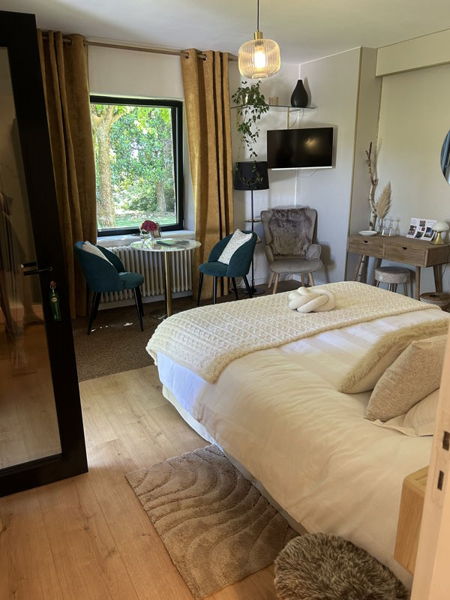 Notre chambre d’hôtes Rêve de Clarté est une destination idéale pour les vacanciers mais également pour les professionnels en déplacement. Labellisée 4 épis, elle est située au calme et à seulement 3 km du centre-ville de Morlaix, à proximité de la voie express, Brest/Paris, vous y trouverez tout le confort et les équipements pour une pause. Notre chambre bénéficie d’un parking privatif, d’une entrée privative et d’une terrasse privative. Avec une vue sur le jardin, vous pourrez travailler tout en vous relaxant. Nous proposons également aux professionnels qui le souhaitent un petit déjeuner dans la chambre en cas de départ matinal.