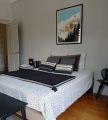 2 pièces *** avec terrasse Sud et mobilier de jardin vue panoramique lac et ville, WIFI gratuite au 1er étage d'une villa sur jardin au calme proche centre ville, avec lave linge, four traditionnel et four micro ondes, cafetière électrique, bouilloire, grille pain, WC séparé, douche italienne, 2 TV écrans plats (une dans la chambre), chambre avec lit 140, coin bureau, séjour avec BZ 140, parking facile et gratuit sur le boulevard.