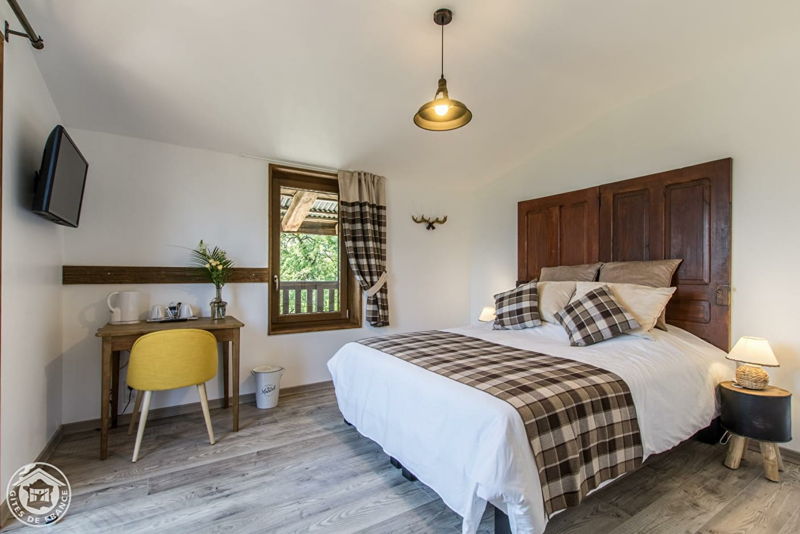 2 chambres d'hôtes aménagées au premier étage d'une ferme en activité, avec vue sur la chaîne du Mont Blanc. Entrée indépendante pour chaque chambre. Salle de bain privative pour chaque chambre. Connexion wifi gratuite. Écran plat dans chaque chambre. Petite cuisine équipée commune pour les 2 chambres, avec lave-vaisselle, four, plaque vitro, lave-linge séchant, vaisselle.