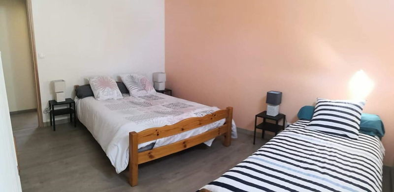 Un étage avec une chambre pour 3 personnes (lit 90x190), une chambre de 2 personnes (lit 160x200), une salle de bain et un wc indépendant - un extérieur avec une terrasse aménagée (salon de jardin, barbecue, chaises longues …), une cour privative avec un accès au clos, un terrain de pétanque et un parking Autre équipement : télévision, micro-ondes, Nespresso, réfrigérateur avec congélateur, aspirateur, lave-linge, table et fer à repasser, sèche-cheveux, équipement bébé sur demande, jeux extérieur, jeux de société, Wifi…