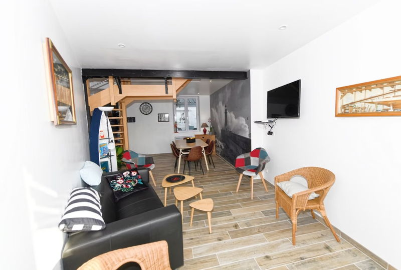 Martine et Gilles vous accueillent dans leur maison de pêcheur entièrement rénovée en 2021. Idéalement située dans un quartier aux allures de petit village, très calme, sans les bruits de la ville et de la plage. Avec une vue panoramique sur la mer et les falaises jusqu'à Étretat. La maison est à l'entrée du port de Fécamp, le long du chenal, vous pourrez donc admirer le passage des bateaux de pêche et autres voiliers juste devant les fenêtres. La vue sur la ville, l'abbaye, la Bénédictine est aussi admirable. Idéal pour séjours de professionnels en déplacement. Arrivée en présentiel ou grâce à une boite à clés. Horaires à la carte.
