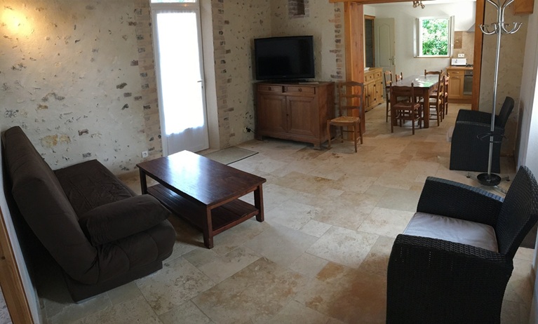 Un coin salon avec un canapé clic clac, télé, wifi et internet illimités. Une chambre avec un lit 2 personnes en 160x200. À l'étage, en haut de l'escalier se trouve : une chambre ouverte avec un lit 2 personnes en 140x200, puis à côté, une autre chambre avec un lit 2 personnes en 140x200 et un lit BB à barreau en bois et 1 lit d'appoint 80x190.