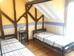 Maison dans petit village 3 chambres - chambre 1 : 1 lit double 160/200 - chambre 2 : 2 lits de 90/190 Salle d'eau et wc au même étage - chambre 3 : 2 lits de 90/200. Wc et salle d'eau attenant. Cuisine équipée ouverte sur le salon avec canapé et fauteuils et coin repas. Extérieur petite cour.