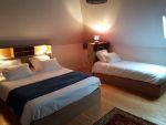Gite les hirondelles comprenant 1 chambre avec un grand lit et une salle d'eau et toilettes et une 2ème chambre comprenant un grand lit et deux lits simples, cuisine entièrement équipée et séjour. Salle de jeux avec un billard et une table de ping-pong.