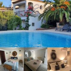 Dans une Villa de charme entièrement rénovée à 800m de la mer dans le quartier de la Croisette nous vous proposons 3 appartements indépendants entièrement équipés avec leur espace extérieur privatif et aménagé. Possibilité de louer 1 ou Plusieurs logements... à partir de 2 nuits... Piscine chauffée en saison Parking privé et clôturé (Recharge véhicules électriques possible). Ouvert toute l'année. Au plaisir de vous accueillir chez nous.