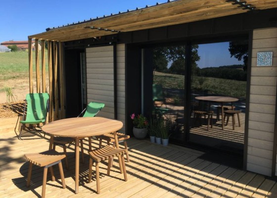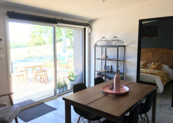 Gîte contemporain meublé tout confort de 50 m². Cuisine tout équipée. Chambre avec lit 140 avec placard, penderie et tv écran plat. Salon avec placard et canapé convertible. Salle de bain. Wc. Buanderie. Terrasse 50 m².