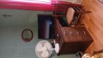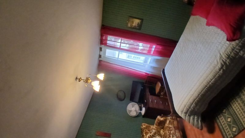 Chambre verte : Chambre d'hôte avec un lit de 140 X 90, un bureau, deux chaises, un canapé, un placard avec penderie, tiroir et étagère.