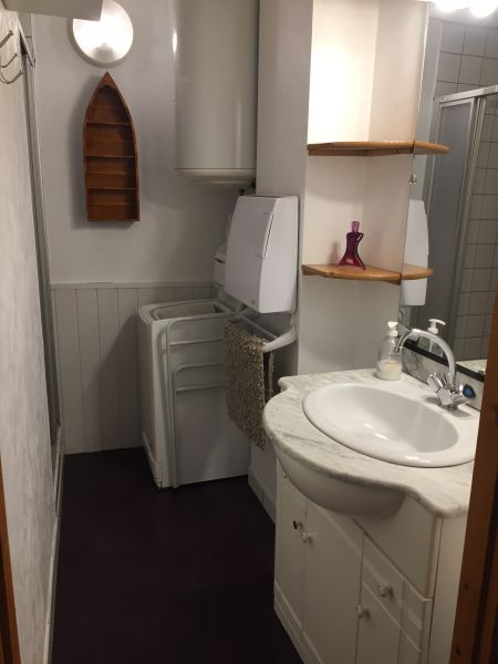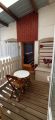 Pièce de vie : canapé convertible, enfilade, lampes, téléviseur, DVD, tables + 4 chaises. Salle de bain : meuble vasque, radiateur sèche serviettes, douche, sèche-cheveux, lave-linge, table et fer à repasser.