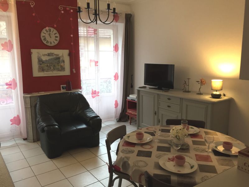 Appartement meublé 40 m², agréable et fonctionnel, capacité 2 personnes, grand balcon sur rue + petite terrasse couverte à l'arrière, parking gratuit à proximité. Composé d'un coin cuisine équipée ouvert sur pièce de vie : réfrigérateur bac congélateur, trio avec plaques vitro, four et lave-vaisselle, micro-ondes, cafetière + expresso, mixer, grille-pain, bouilloire, appareil à raclette, autocuiseur, cocotte en fonte, vaisselle et couverts, casseroles inox, poêles et sauteuse.