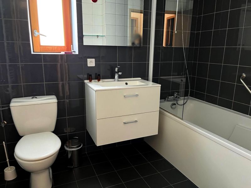 salle de bain équipée d'une baignoire douche avec sèche serviettes,